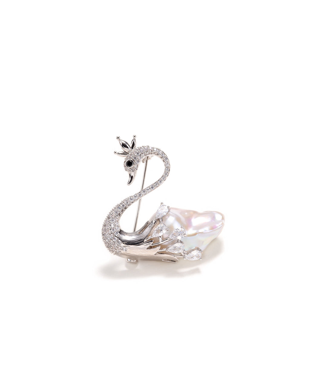 This beautiful swan brooch is expertly made from sterling silver and features a radiant white Baroque pearl. It's an effortlessly elegant accessory.