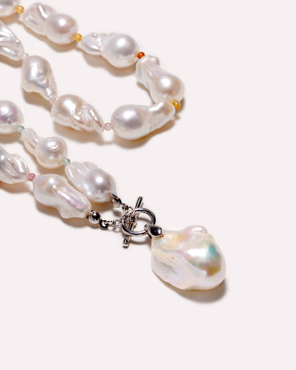 Transform your look with CORA - a beautiful baroque pearl choker, featuring pearls and mini colored tourmalines. This stunning piece catches the light, changing colors to give an elegant and versatile effect.