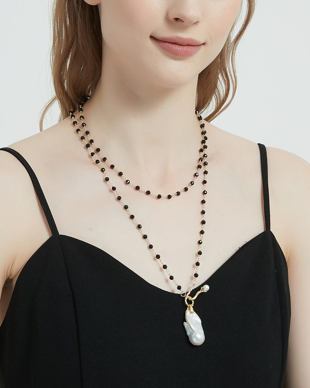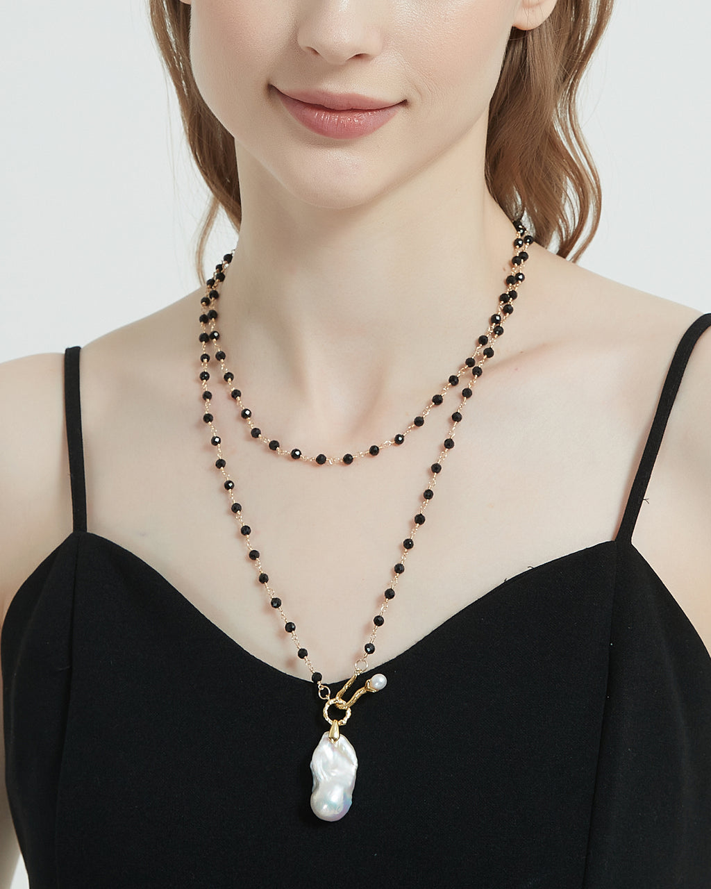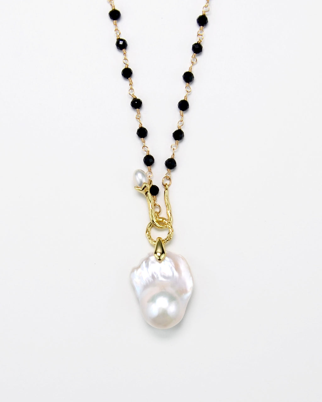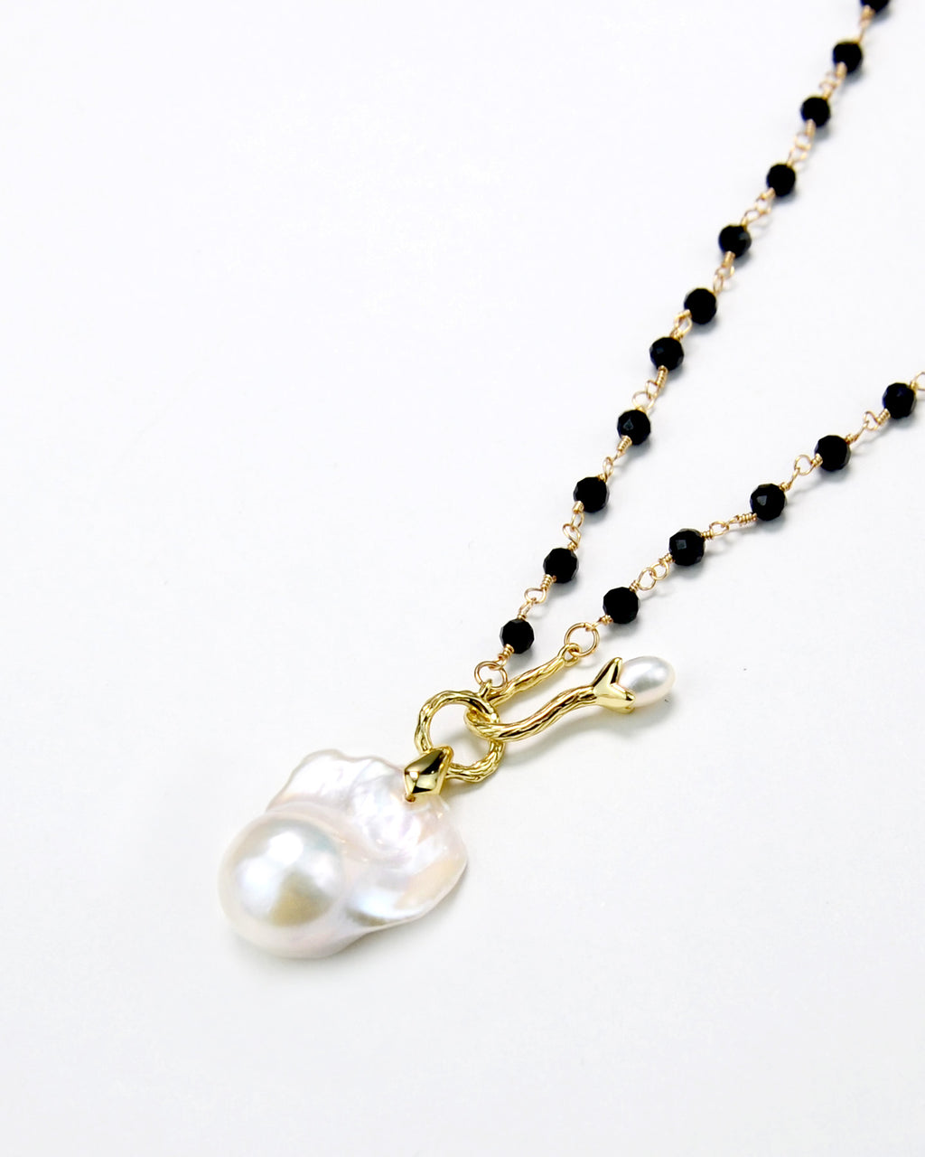 JOCELYN - Mexican Obsidian & Baroque Pearl Necklace