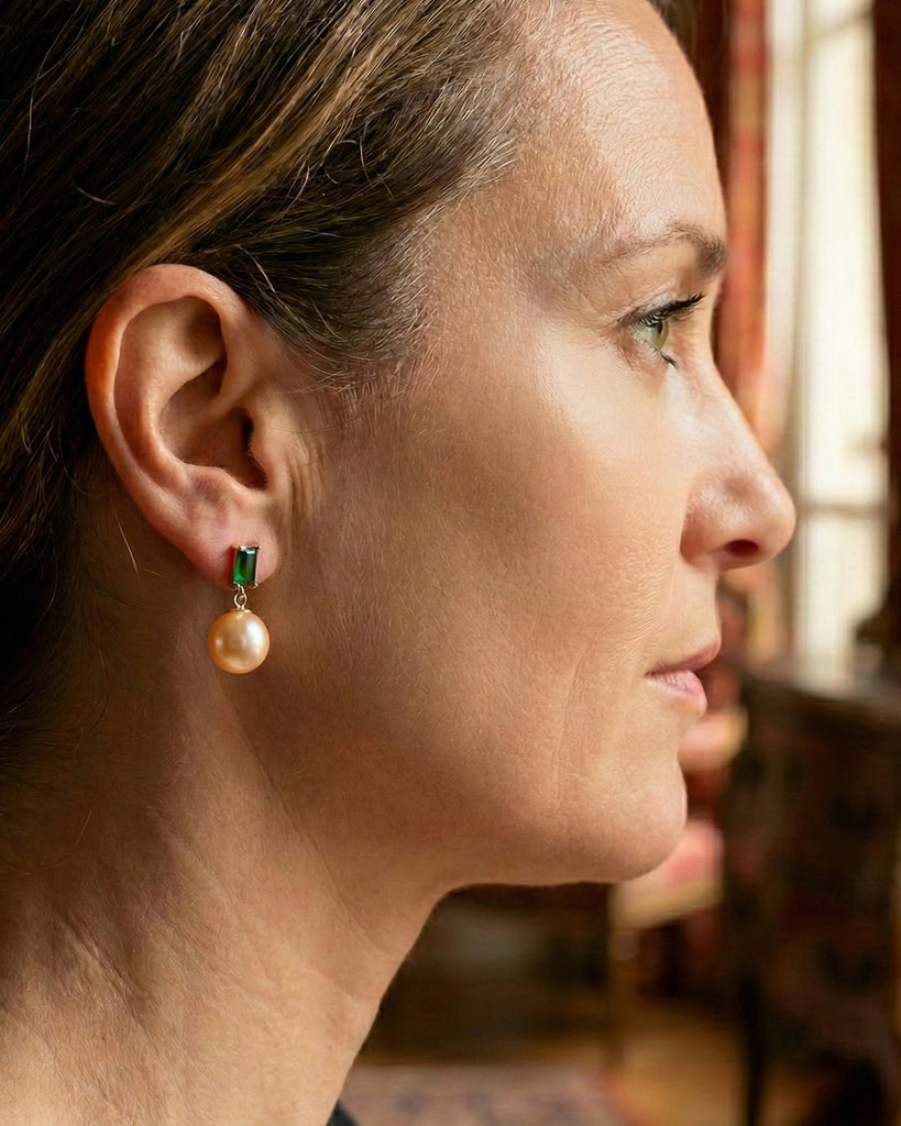 ETTA - Emeralds & Pink Pearl Drop Earrings in 18k Gold