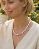 Collar necklace featuring white freshwater baroque pearls. Baroque pearls are one of a kind — sizes and shapes will vary.