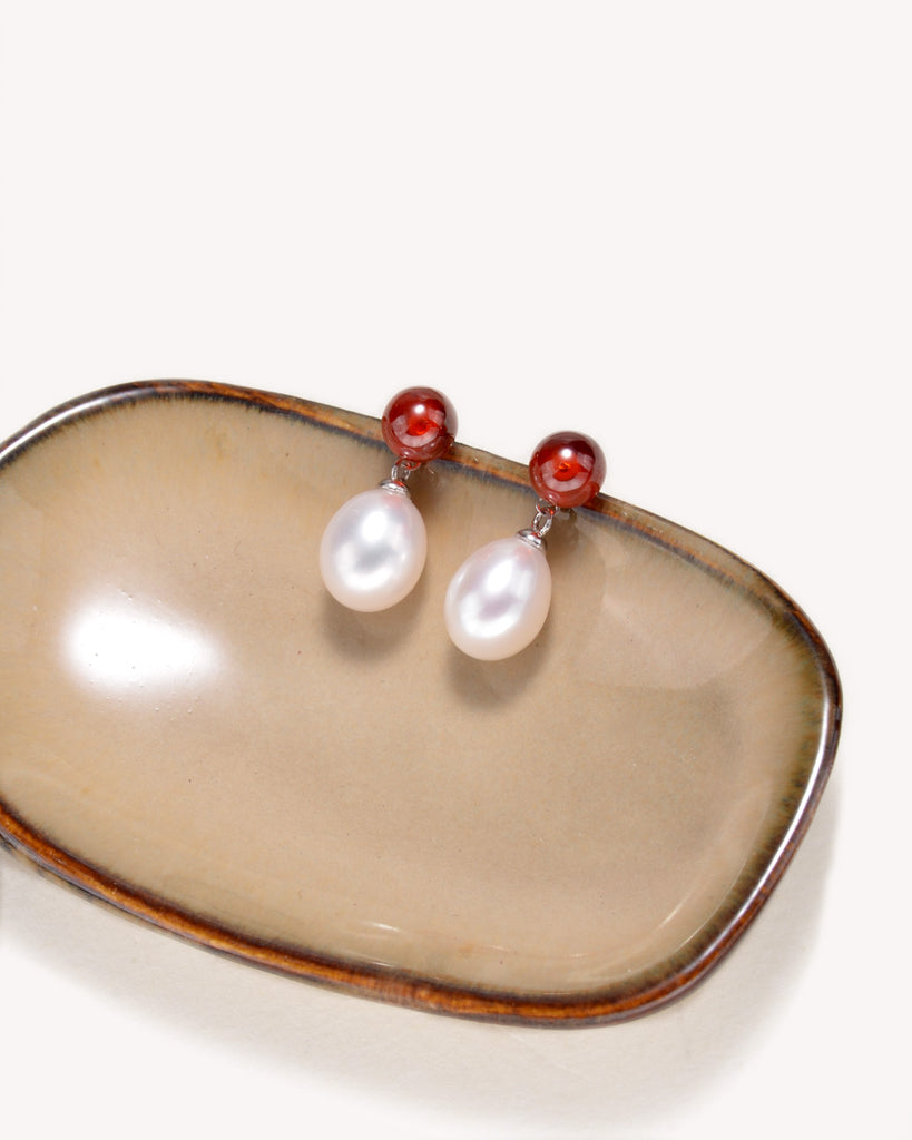ZENOBIA - Garnet & Pearl Stud Earrings