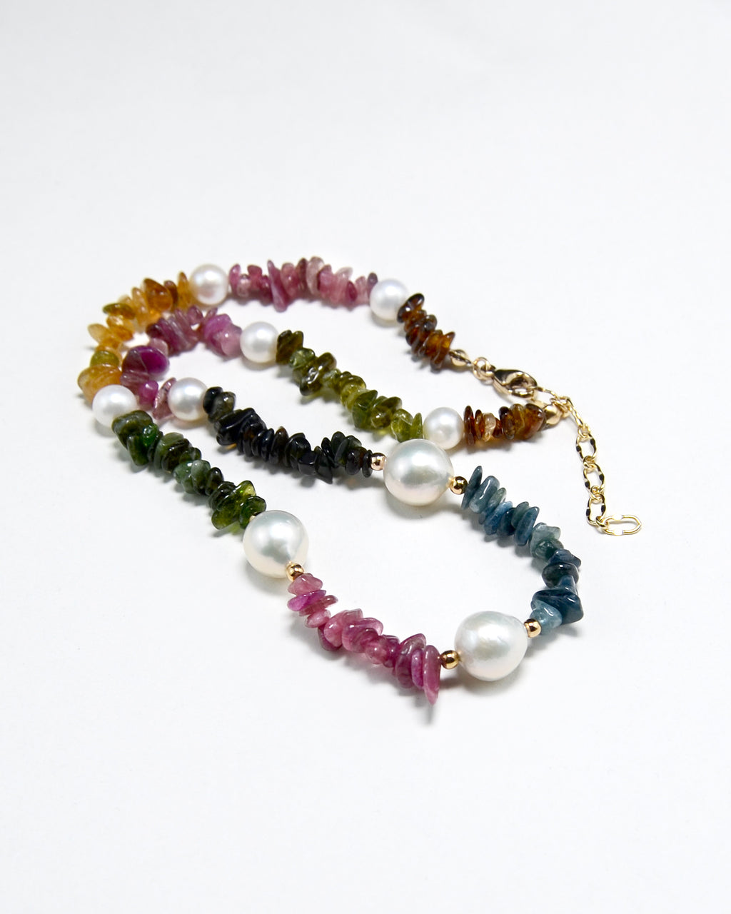 Naturally Tourmaline beads from Brazil, with gorgeous white pearls. Perfect for everyday wear, could be layered with other necklaces.