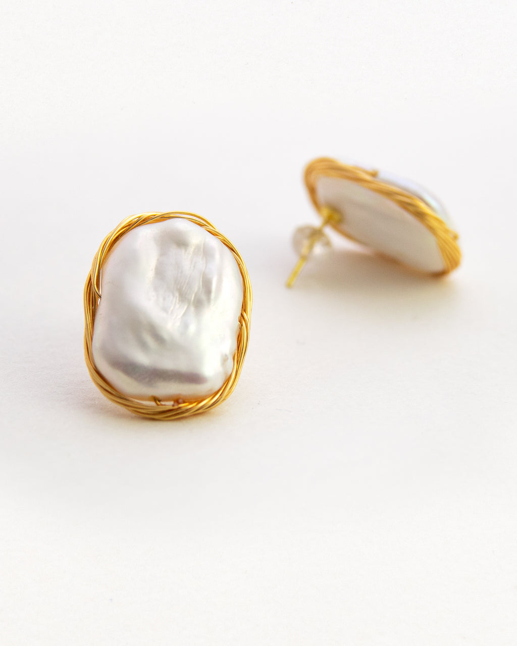 Button-shaped pearls are placed in a nest, which is woven from 14k gold wires. The appearance is tough, but the heart is always soft.