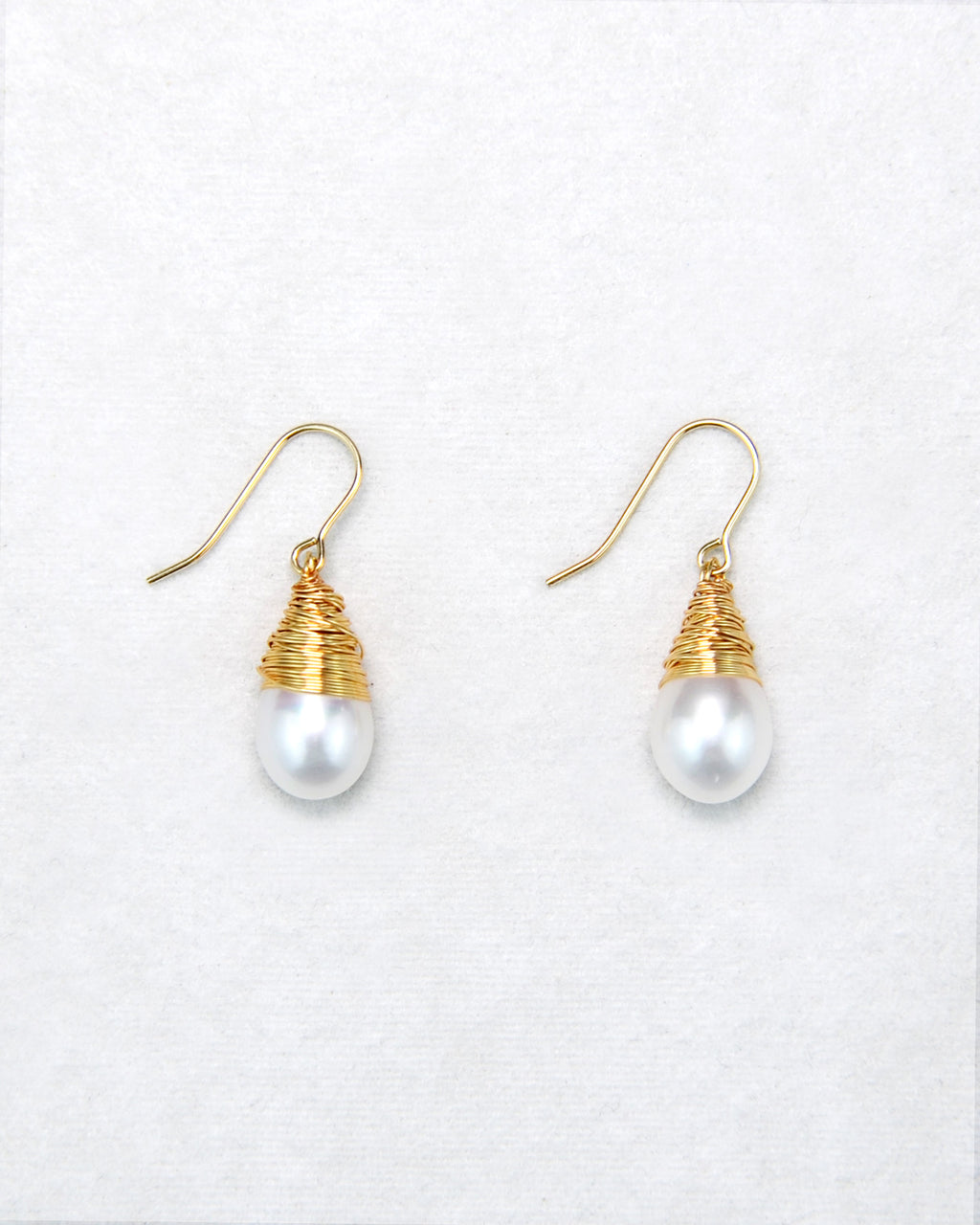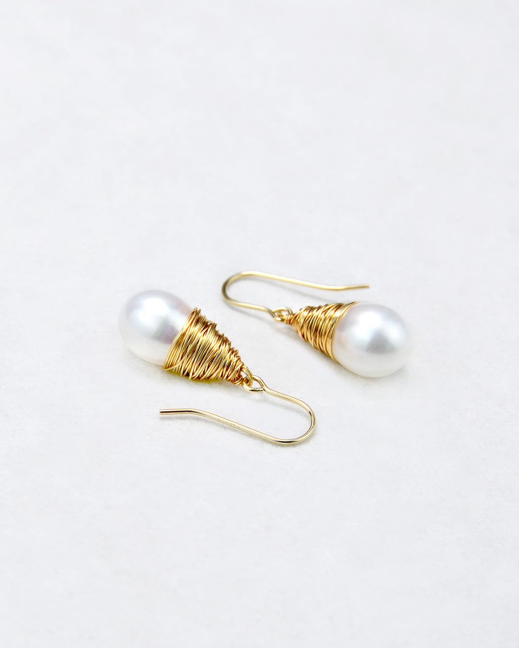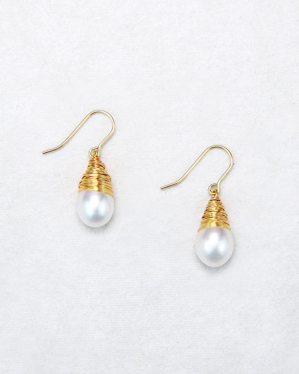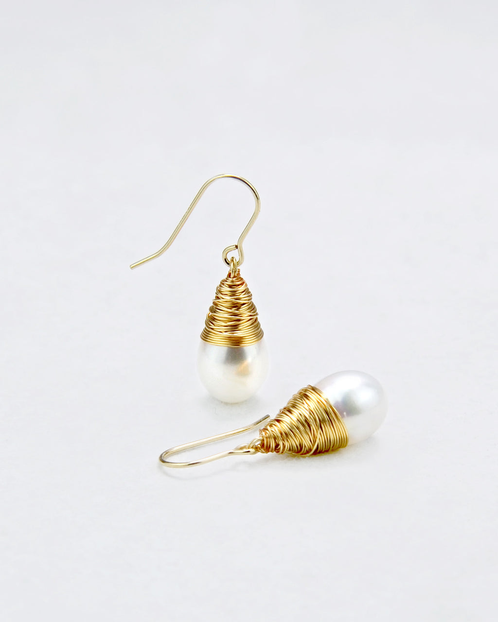 Featuring captivating tear-drop pearls hand-wrapped with 14k gold wire, they provide a sophisticated, polished look.