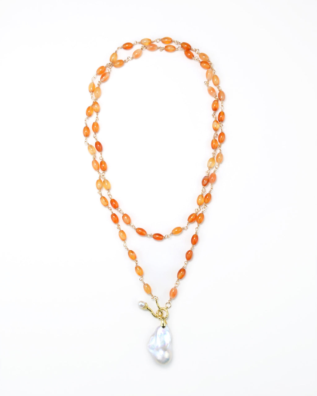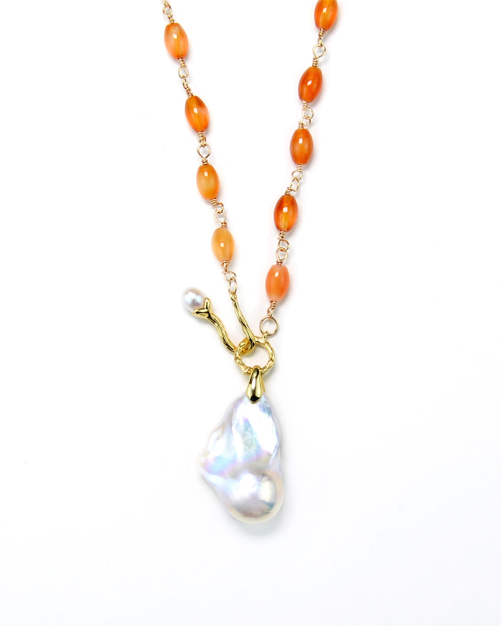 Naturally Yellow Agate beads from India, there is also a gorgeous Baroque pearl. Perfect for everyday wear, could be layered with other necklaces.