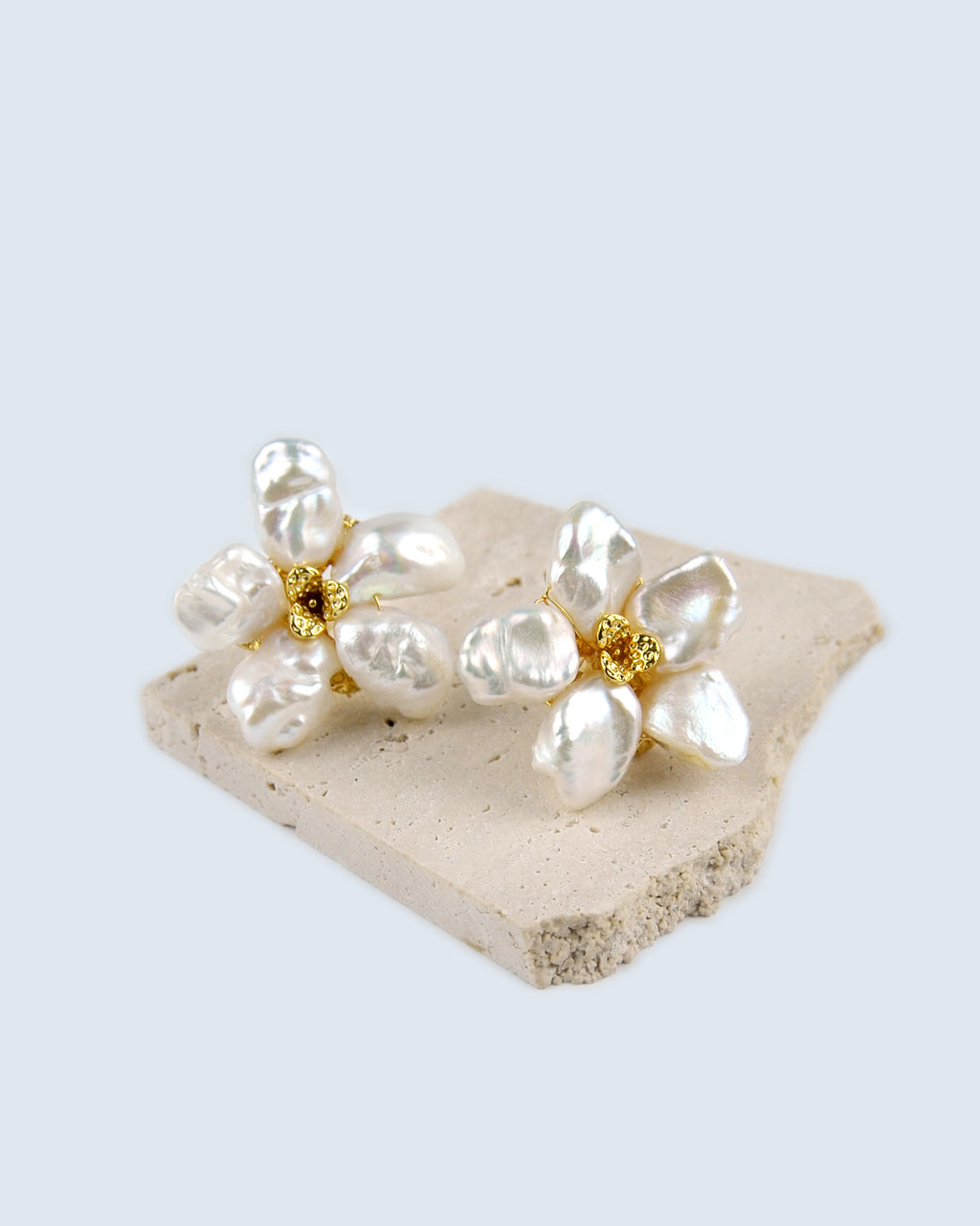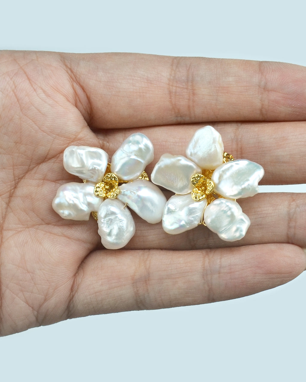 Gorgeous white Keshi baroque pearls, simple and timeless earrings stud design.