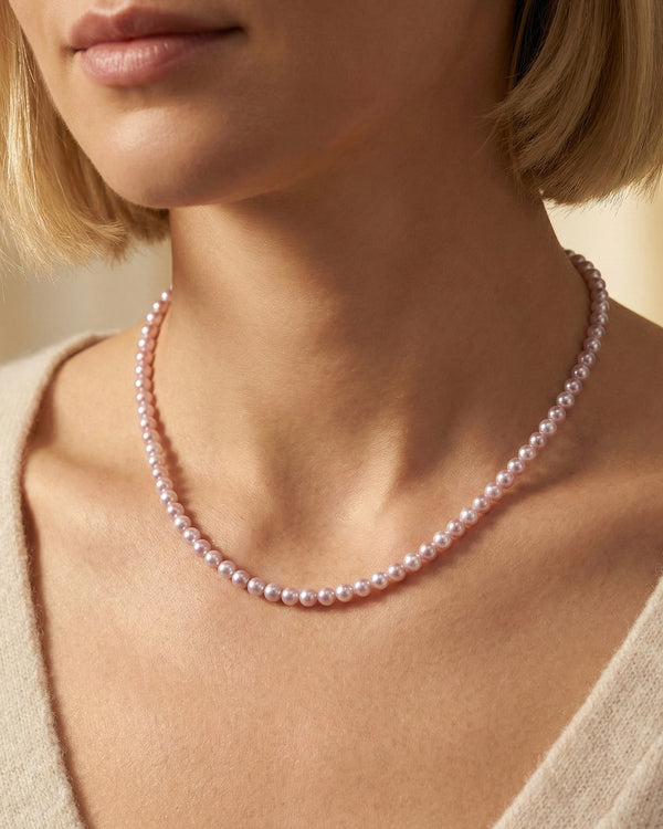 A stunningly rare pink pearl collection with a vibrant luster. These pearls reflect a captivating dance of colors with every shift in light.