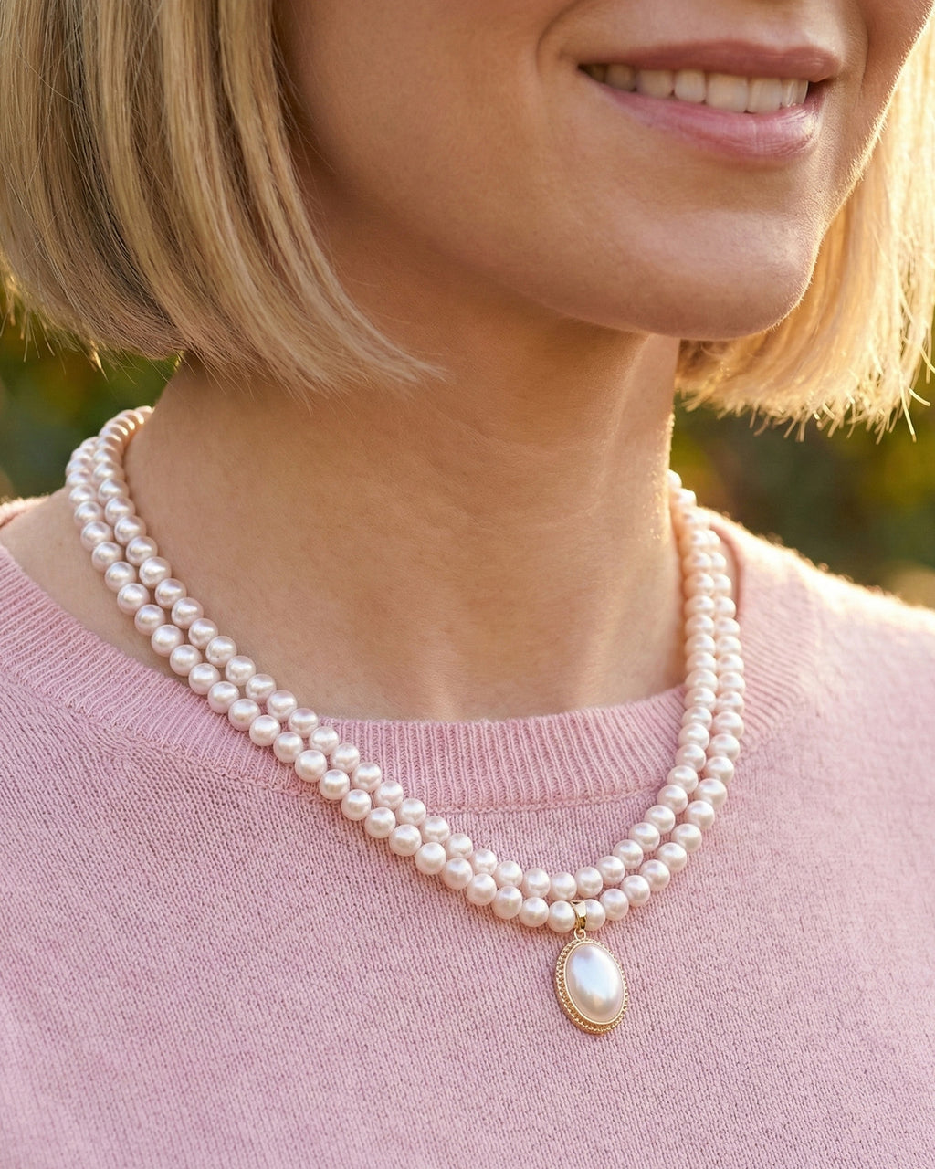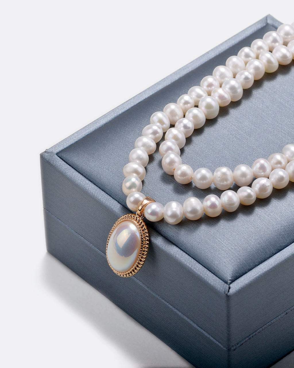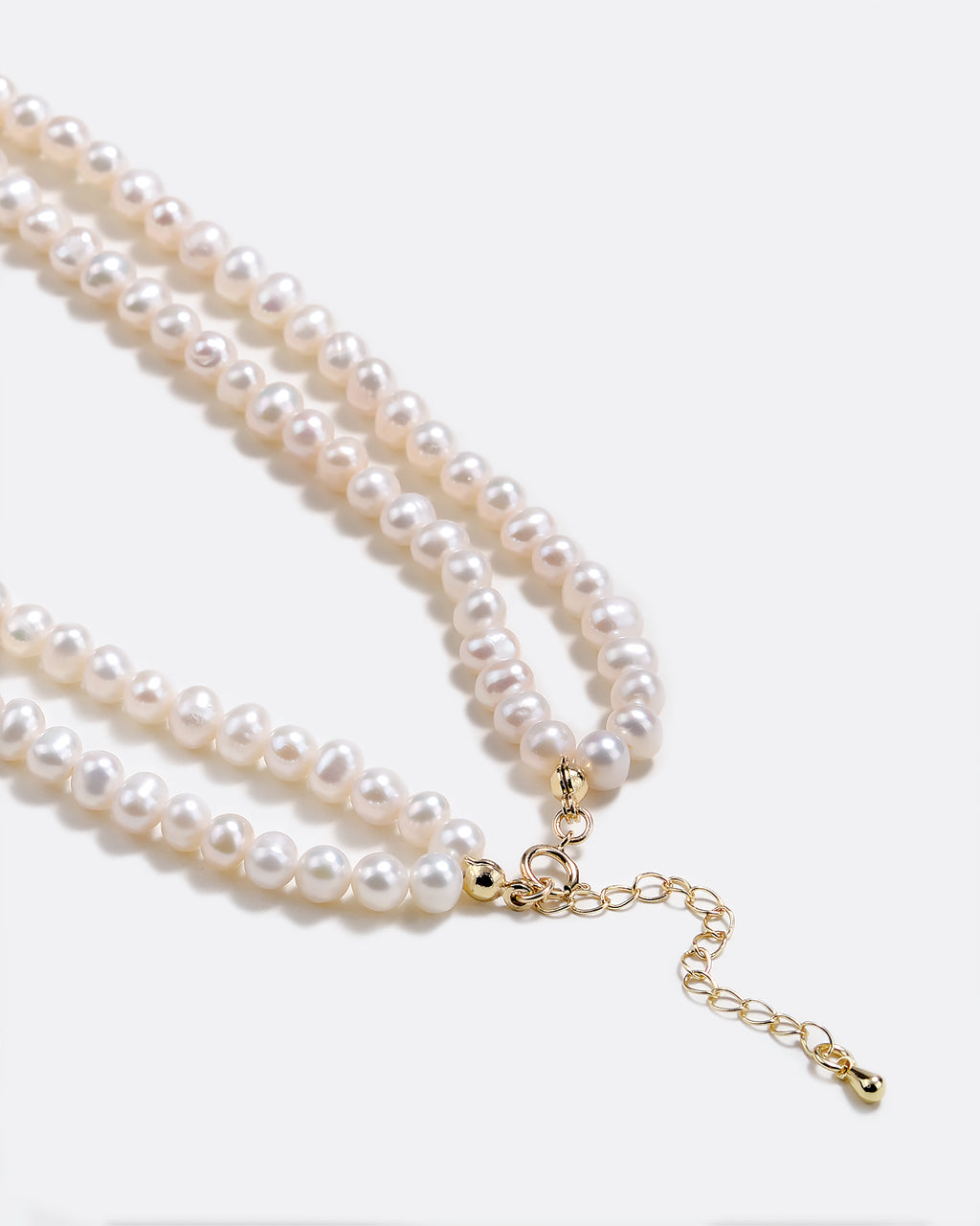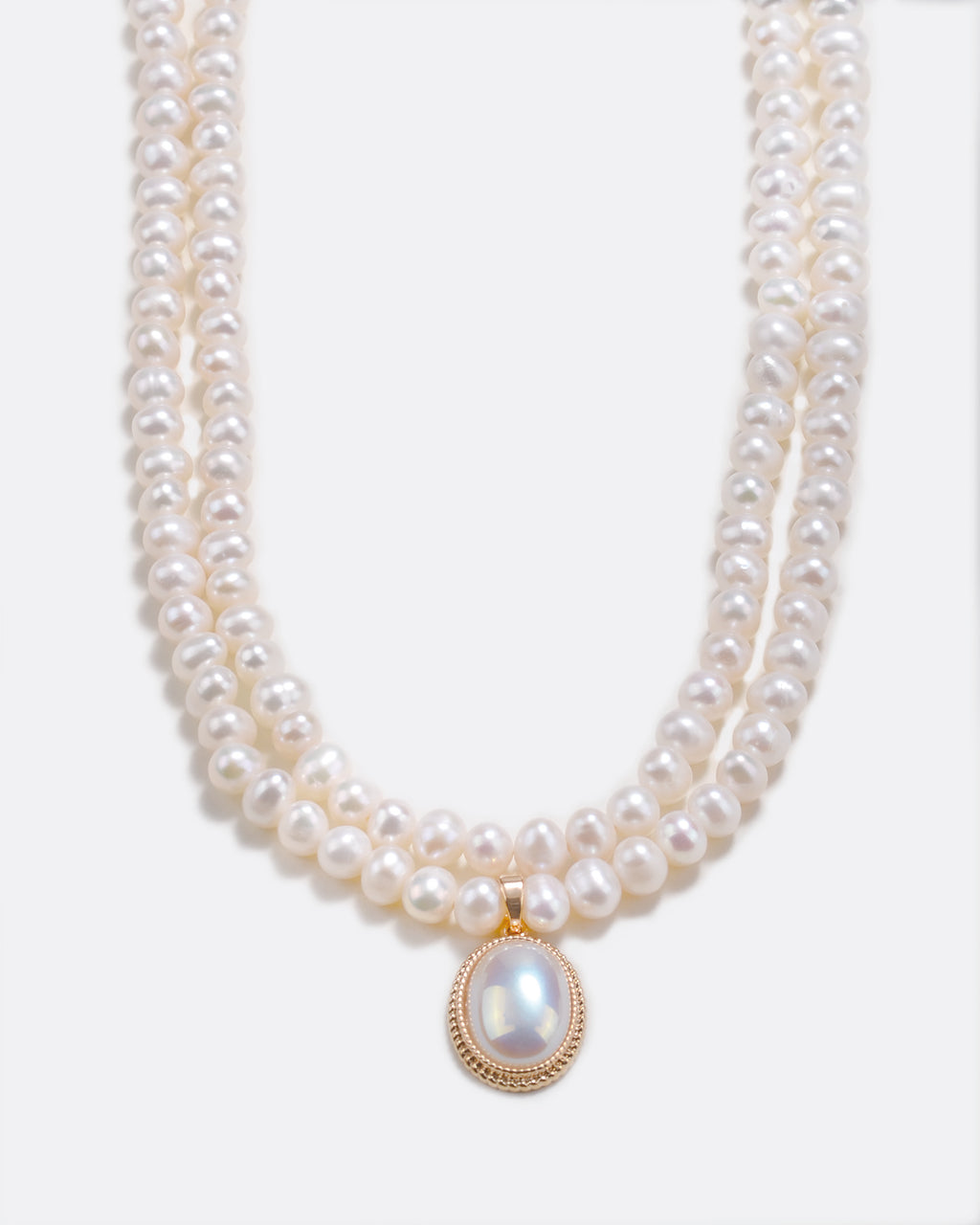 Simple yet elegant, our Two Strand Pearl Necklace is adorned with a beautiful 14k gold  pendant. Add this necklace to any outfit for timeless look.