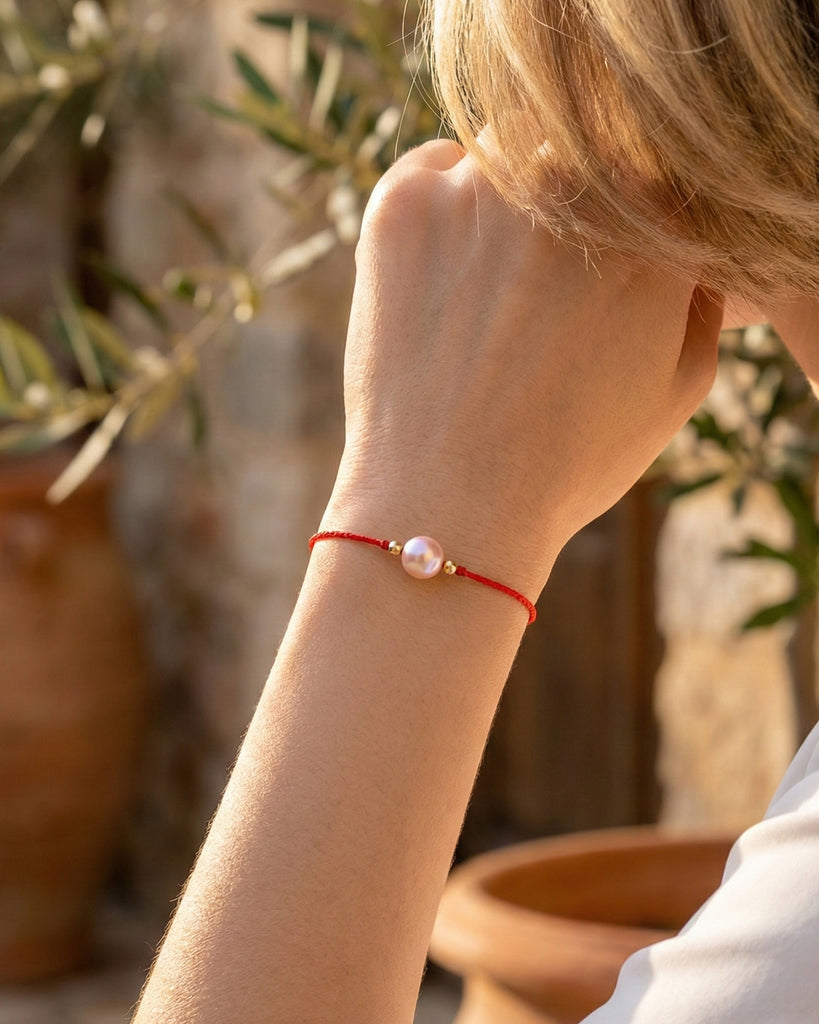 Experience the glow of a genuine 8mm Japanese Akoya pearl. Designed for everyday comfort, our red string bracelet features an adjustable sliding knot that fits up to 22 cm. Simple, elegant, and designed to fit every wrist perfectly.