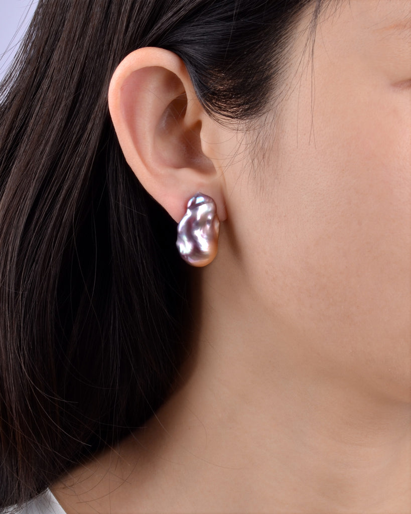 OLIVE - Purple Baroque Pearl Stud Earrings