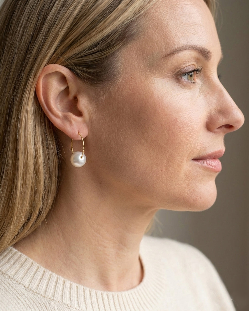 Make a bold statement with these magnificent 13mm oversized freshwater pearls. Each gem radiates a luminous white glow with a romantic hint of pink, beautifully suspended from textured gold hoops. Perfectly blending modern design with natural luxury, these earrings are the ultimate centerpiece for any look.