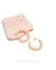 These elegant C-hoop earrings are meticulously crafted from 14K gold-plated sterling silver, offering a warm, luxurious finish that perfectly complements the skin. Each hoop features a graceful row of natural peach pearls, hand-selected for their soft, romantic hue and iridescent shimmer. The combination of the classic hoop silhouette and the unique peach tones creates a sophisticated accessory that adds a touch of feminine charm to any outfit.