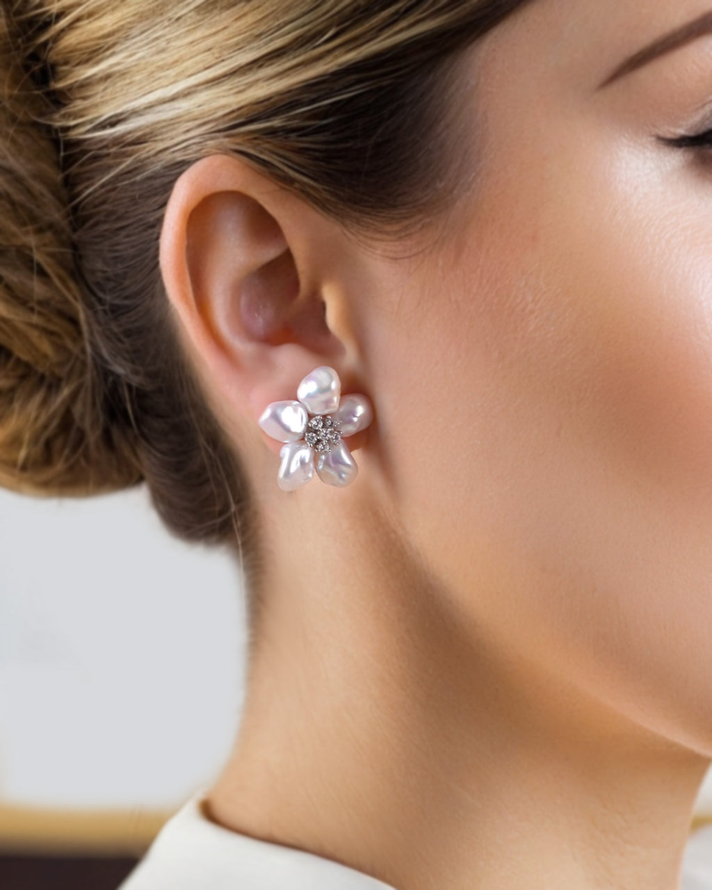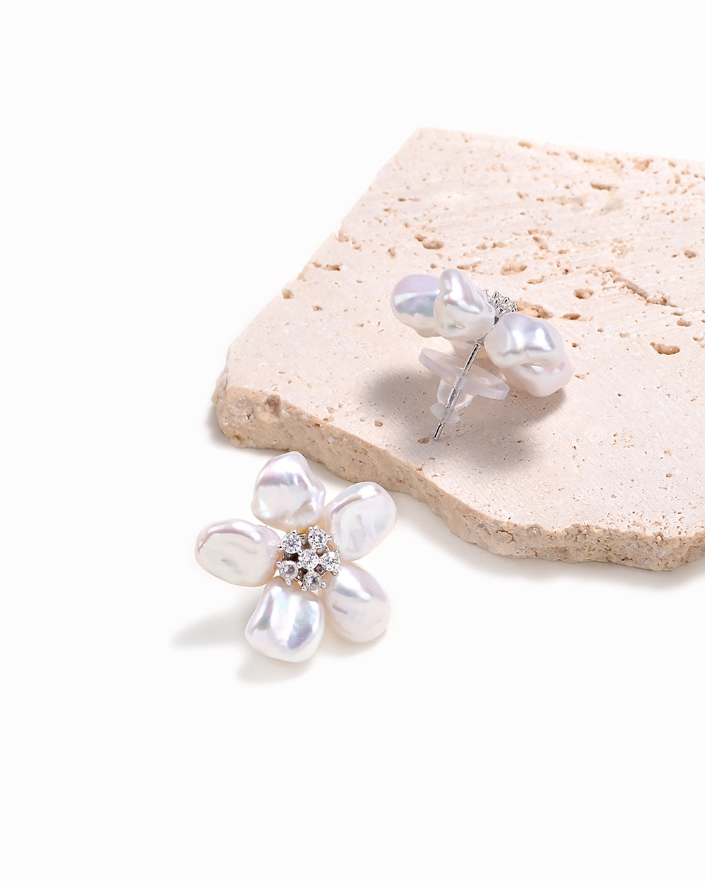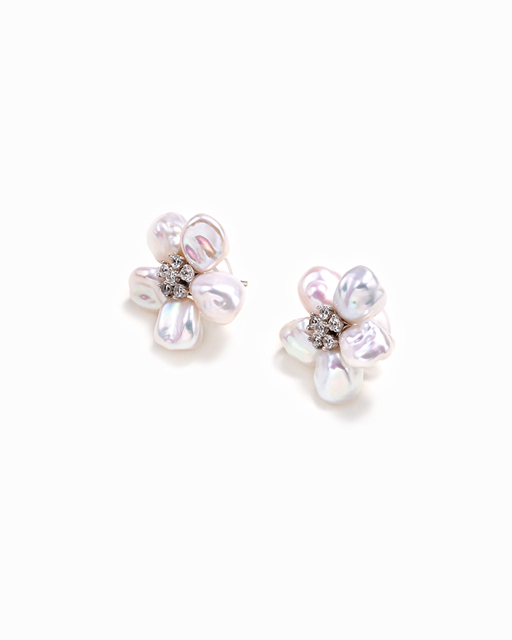 GRACE - White Keshi Pearl Stud Floral Earrings