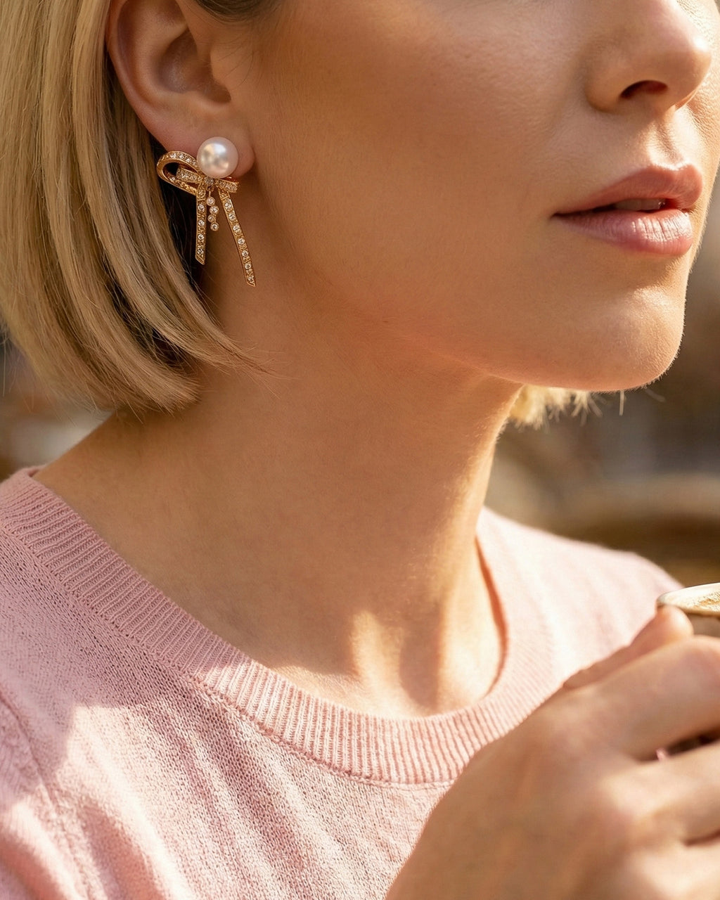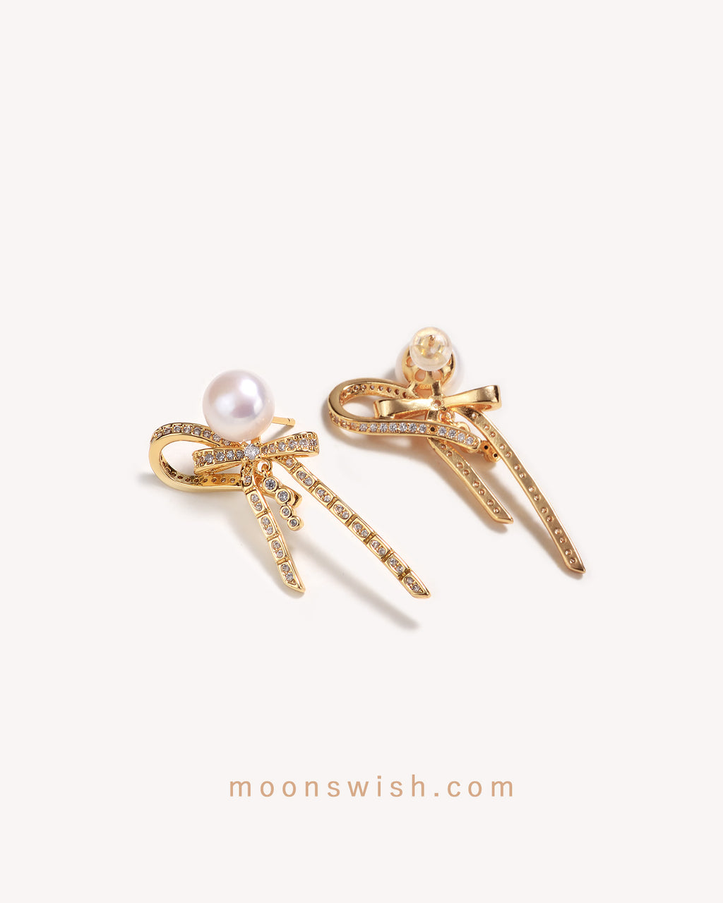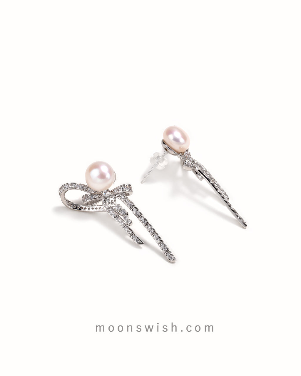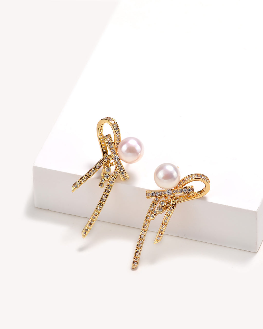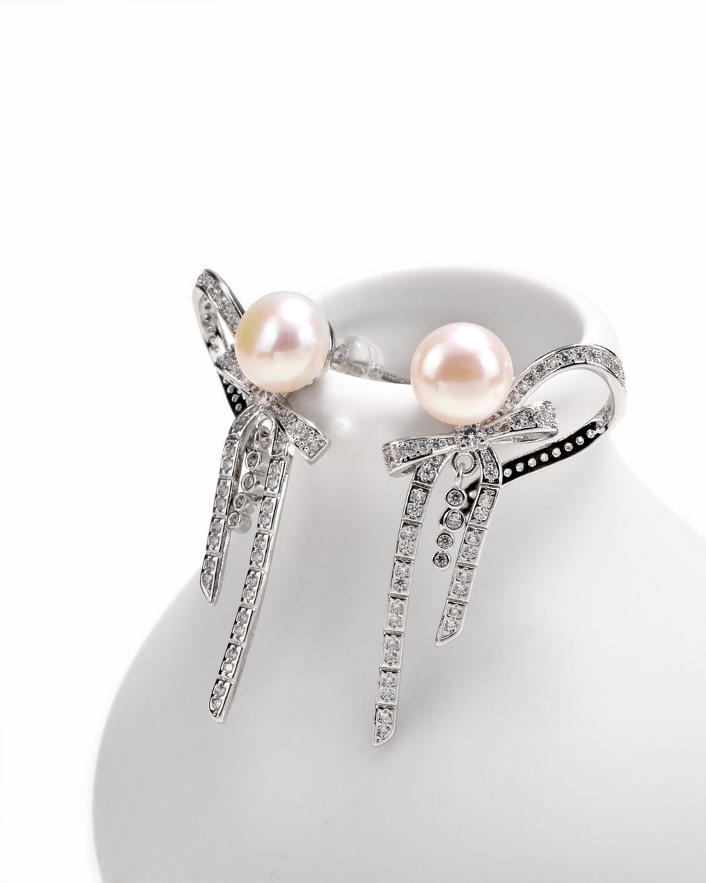 Infused with romantic charm, these unique earrings gain a lively touch. The beautiful natural freshwater pearls pair perfectly with the elegantly designed French-style bow.