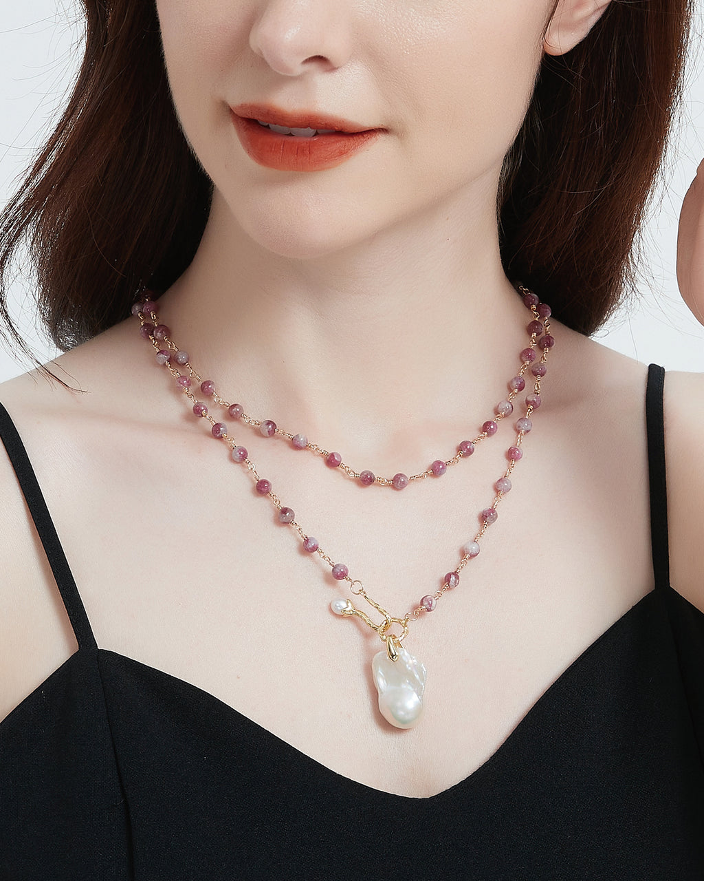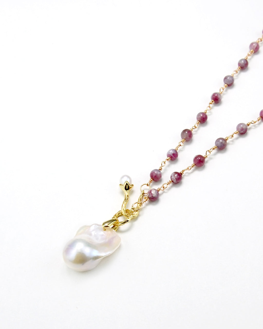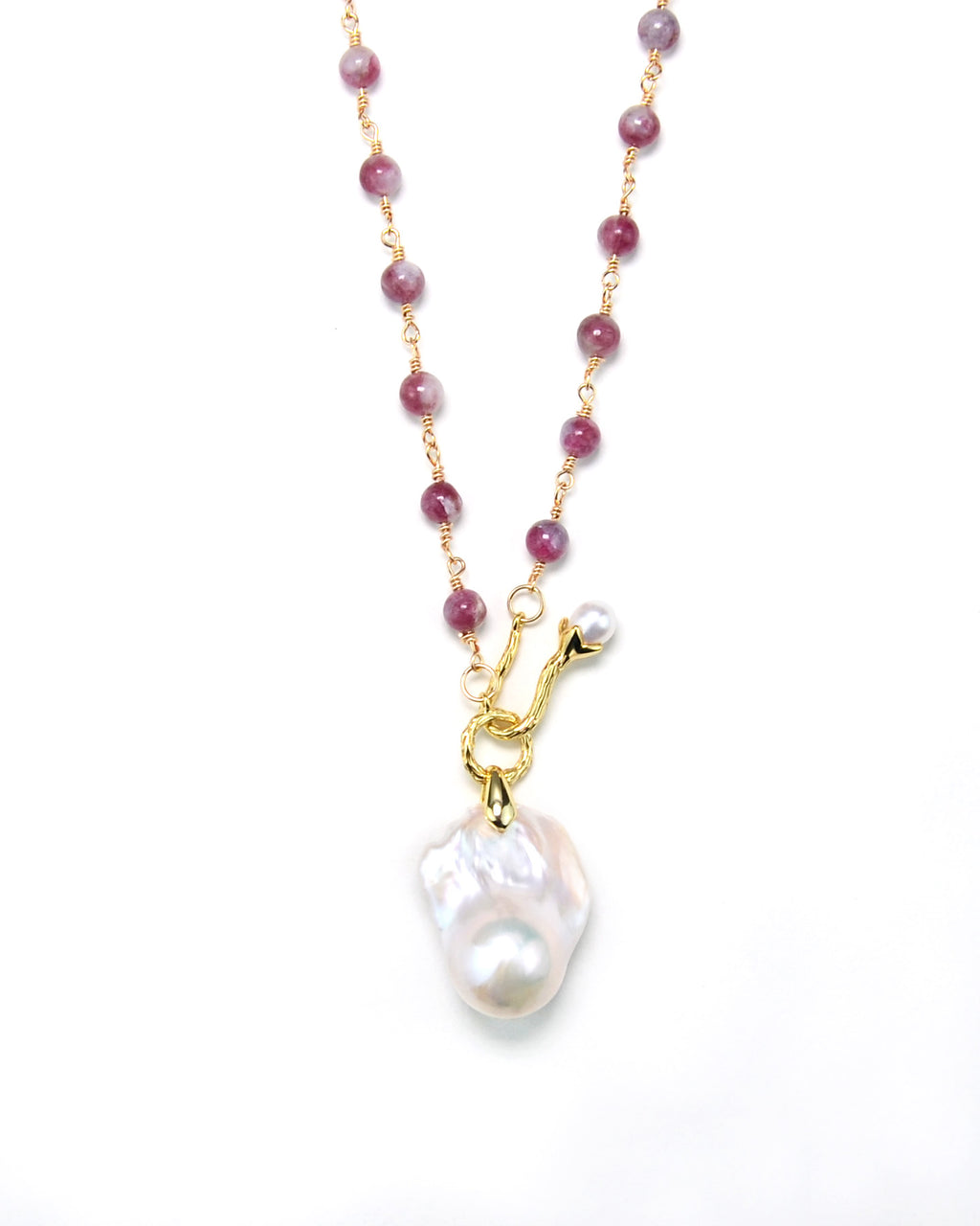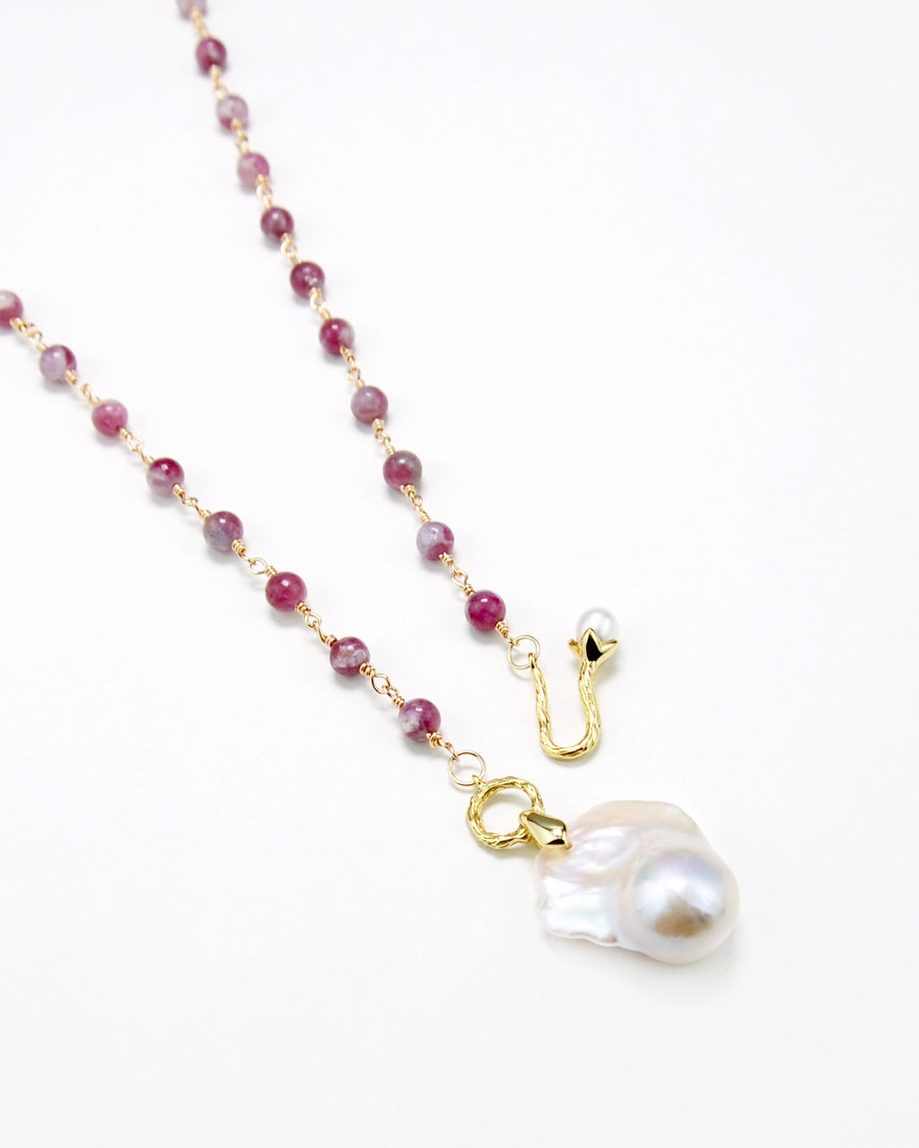 Naturally Pink Tourmaline beads from Brazil, there is also a gorgeous Baroque pearl. Perfect for everyday wear, could be layered with other necklaces.