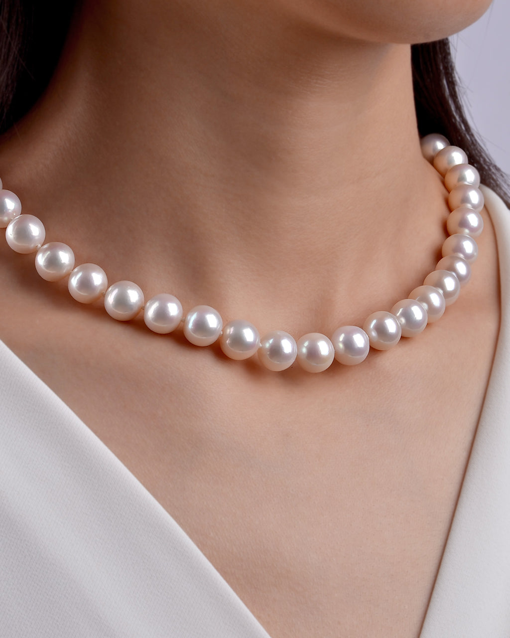Imagine the captivating beauty of large, lustrous freshwater pearls gracing your neckline. These aren't just any pearls – each one is hand-selected for its exceptional smoothness and radiant glow, ranging from 9.0-11.0mm.