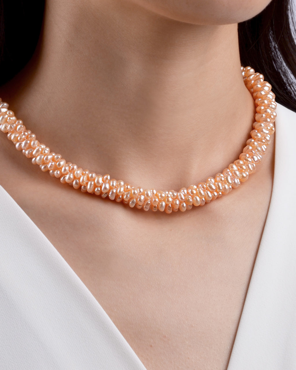 MADELINE - Hand-wrapped Peach Pearls Necklace