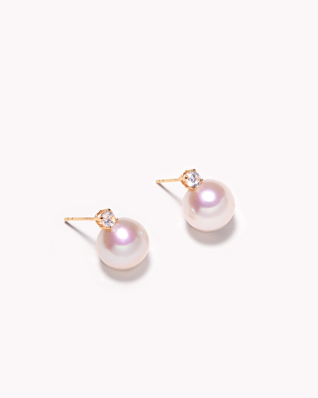 These sleek, classic stud earrings feature a sparkling zircon and an Akoya pearl.
