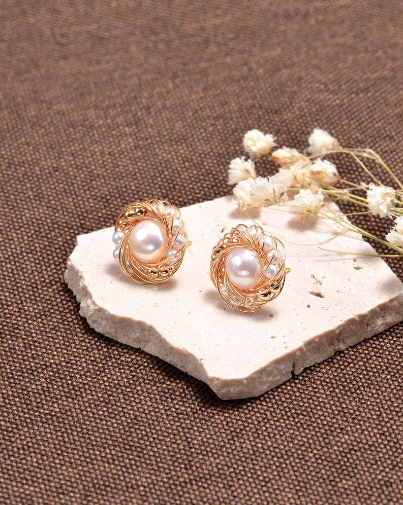 ZOEY - Hand Wrapped Pearl Stud Earrings