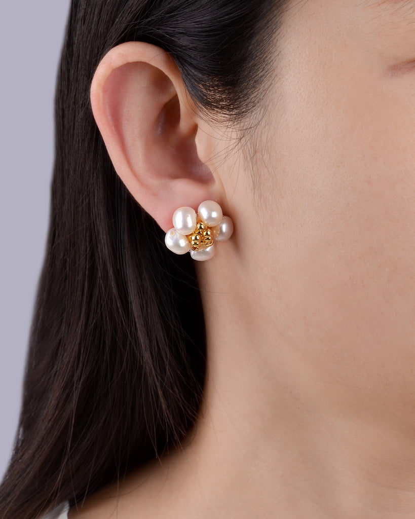 Celebrate elegance with a heartbeat in our Bloom Pearl Studs, where luminous freshwater pearls are meticulously hand-arranged into a delicate floral silhouette by talented mothers in our local community. These stunning earrings showcase a natural, iridescent glow and a unique handcrafted texture, offering a sophisticated look that empowers local women with every wear. It’s more than just a beautiful accessory—it’s a piece of wearable art that embodies the warmth, skill, and dedication of the artisans who crafted them at home.