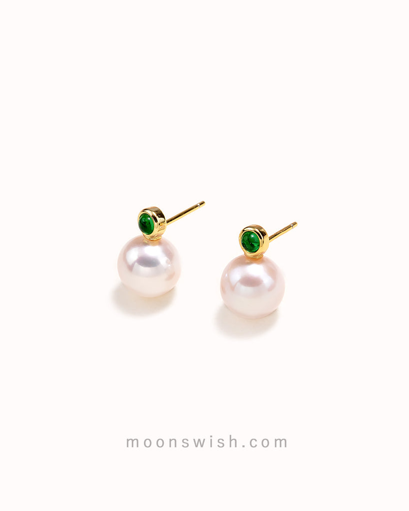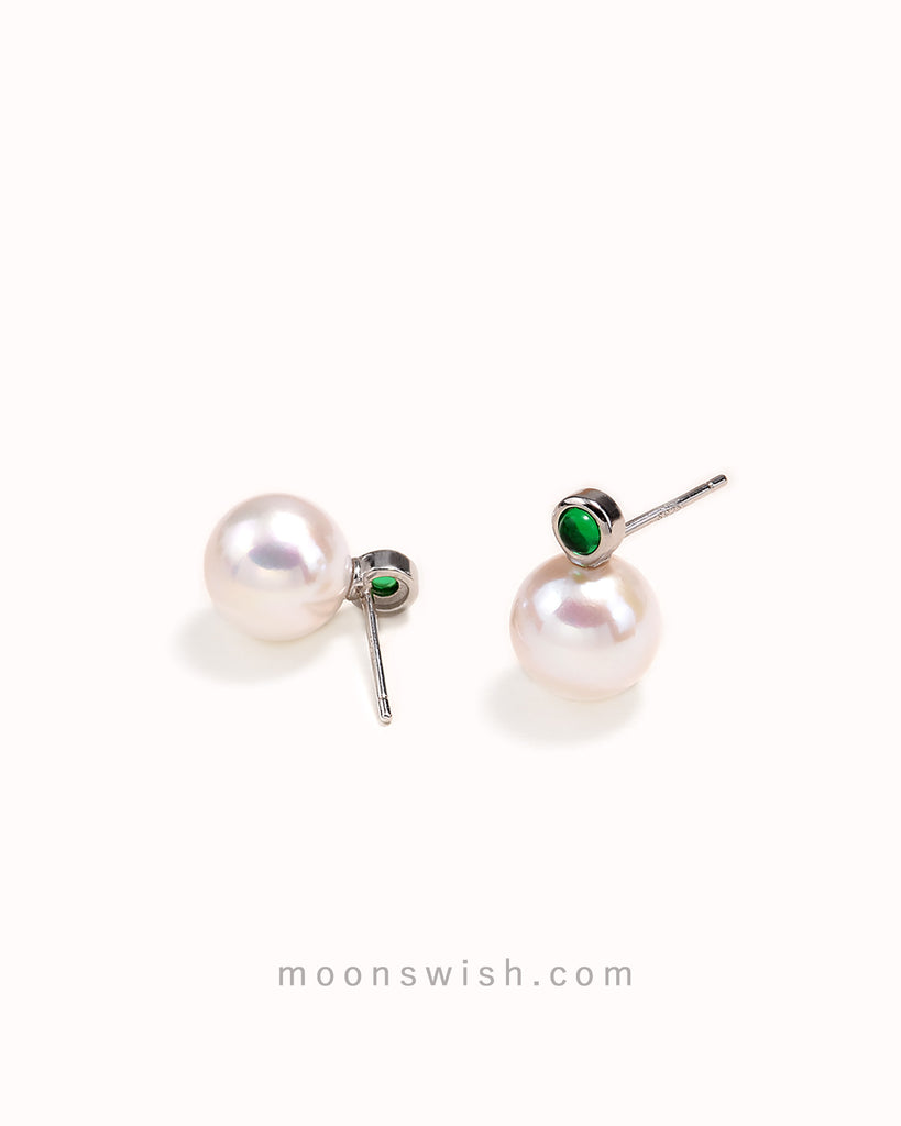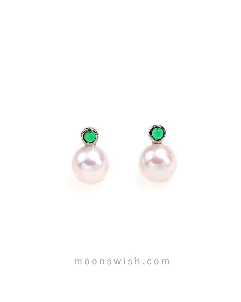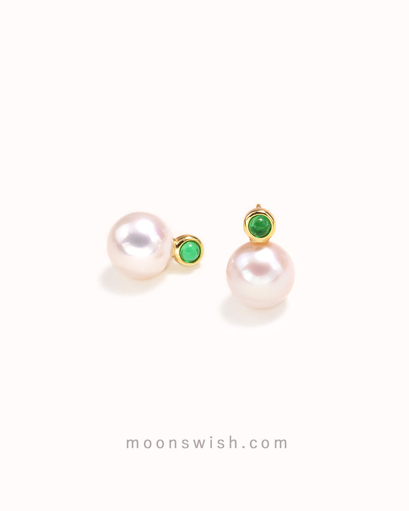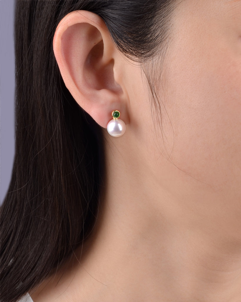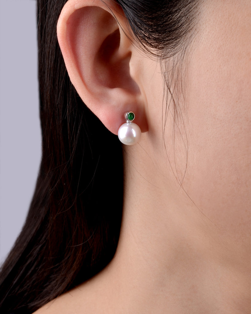 A radiant freshwater pearl crowned by a vibrant green gemstone, set in a minimalist gold or silver cradle. This earring transcends simple adornment, embodying a modern elegance that transforms a classic accessory into a symbol of vibrant life and sophisticated grace. Whether catching the light at a formal gala or adding a touch of prestige to your daily ensemble, these studs are designed for the woman who finds beauty in the harmony of nature and luxury.