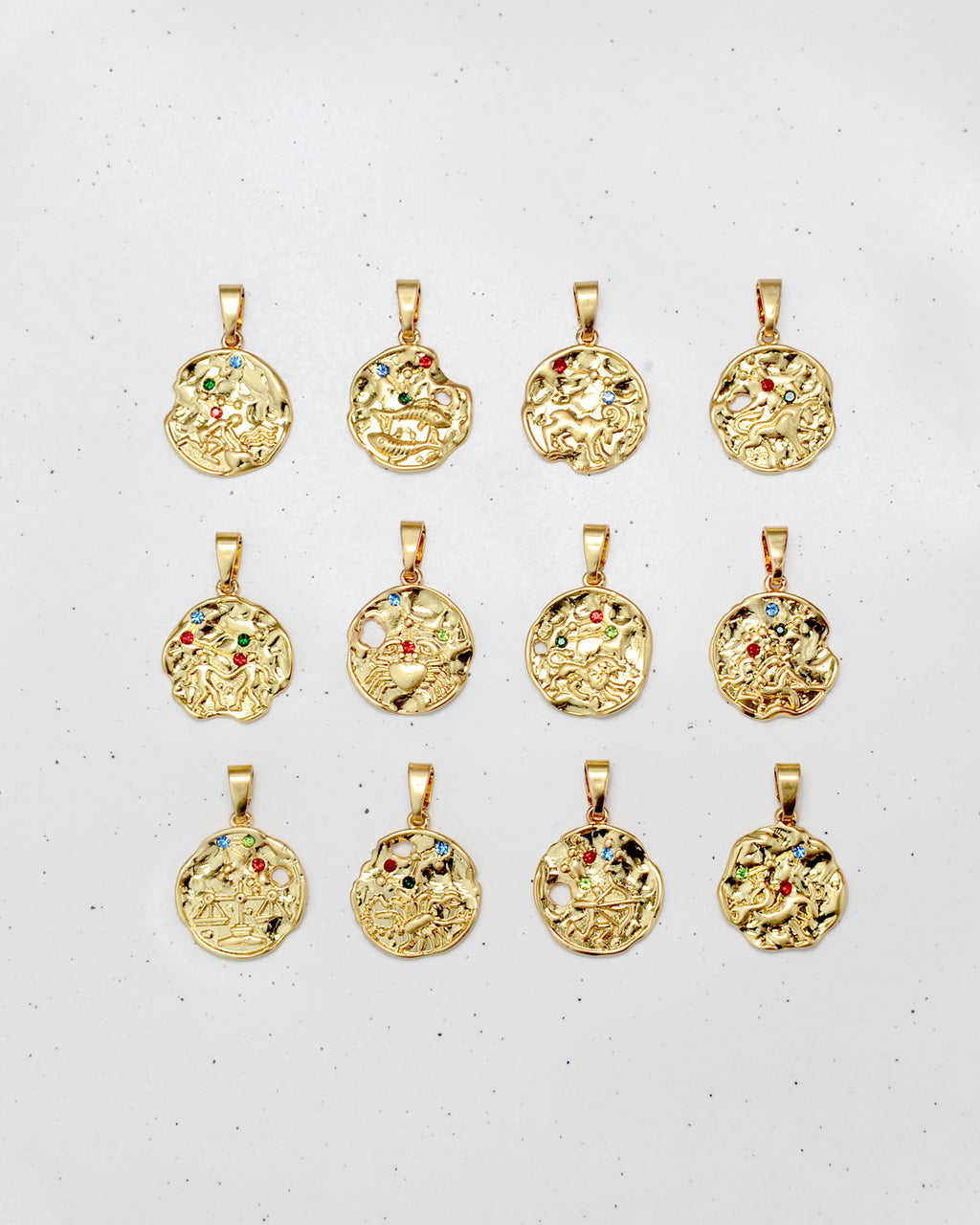 Whether you are a bold Aries, a soulful Pisces, or a grounded Taurus, this collection offers 12 unique zodiac pendants intricately designed to capture the essence of your constellation. Each pendant is embellished with delicate, colorful accents that catch the light with every movement.