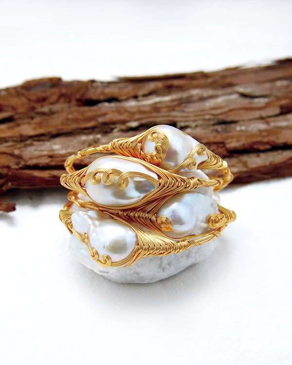 Baroque pearls are prized for their unique and irregular shape, which gives them a distinct and captivating beauty. Their organic and lustrous appearance adds a touch of elegance and sophistication to any piece of jewelry they are incorporated into.
