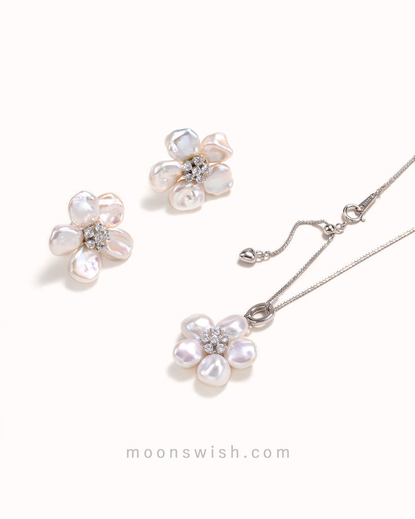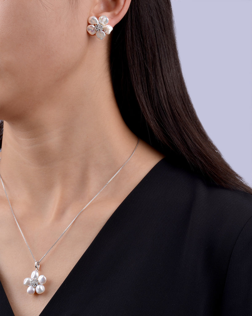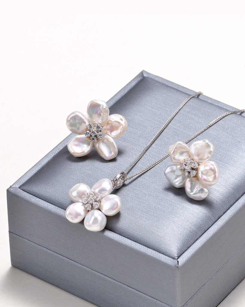 Flowers - Keshi Pearl Jewel Set in Silver