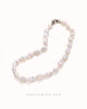 Collar necklace featuring white freshwater baroque pearls. Baroque pearls are one of a kind — sizes and shapes will vary.