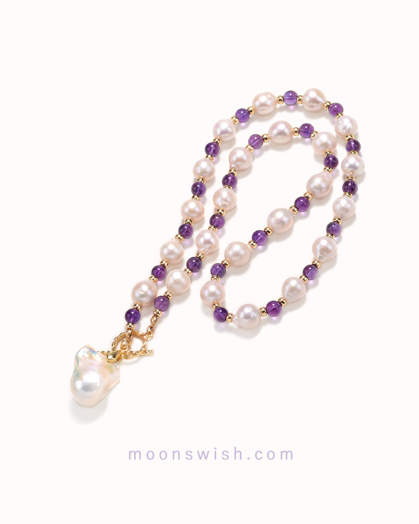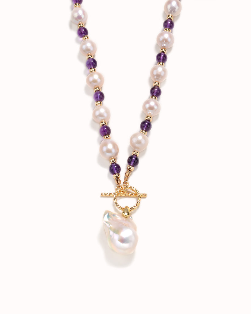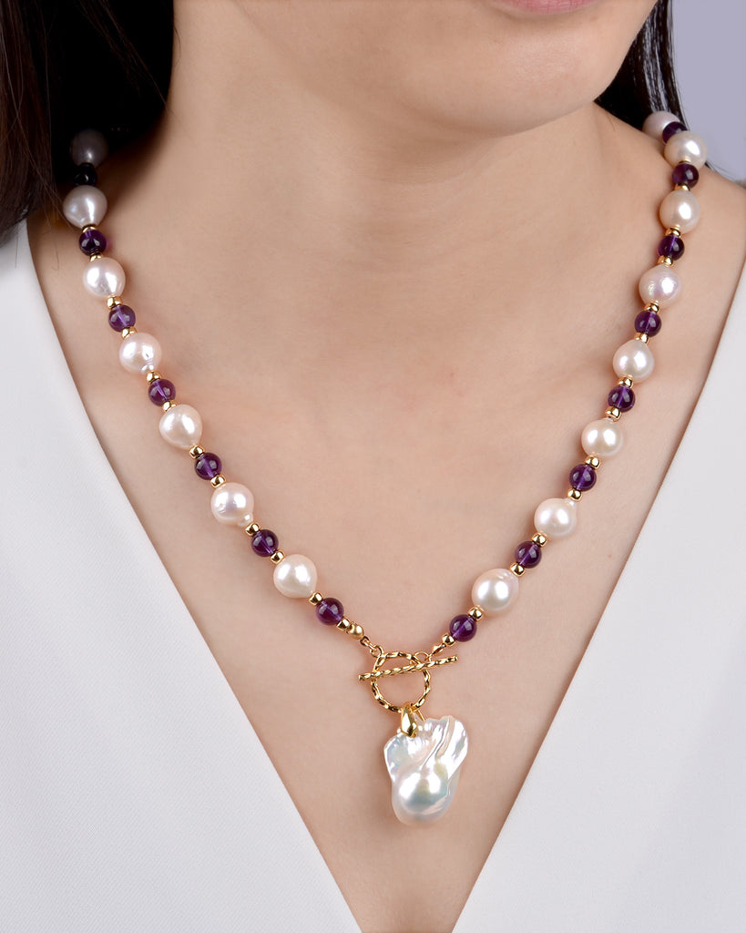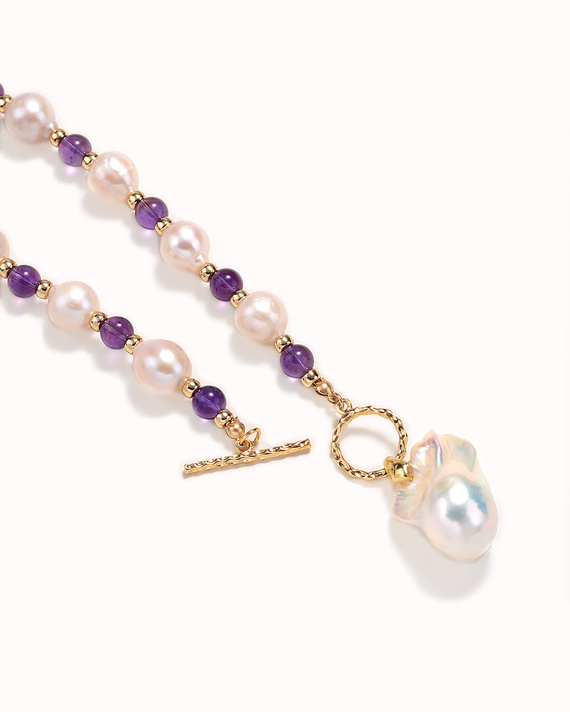 SIMONA - Amethyst & Baroque Pearl Necklace